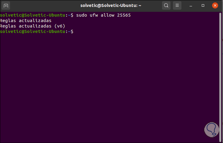 El siguiente paso será habilitar el firewall con el fin de conceder autorización al tráfico que ha de acceder al servidor de Minecraft, esto lo realizamos con el siguiente comando: