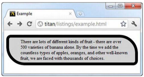 En este elemento lo creamos con un borde bastante irregular, si no hubiésemos aplicado el padding el borde hubiese interceptado el texto, hagan el cambio y verifiquen en sus navegadores para que vean la diferencia.