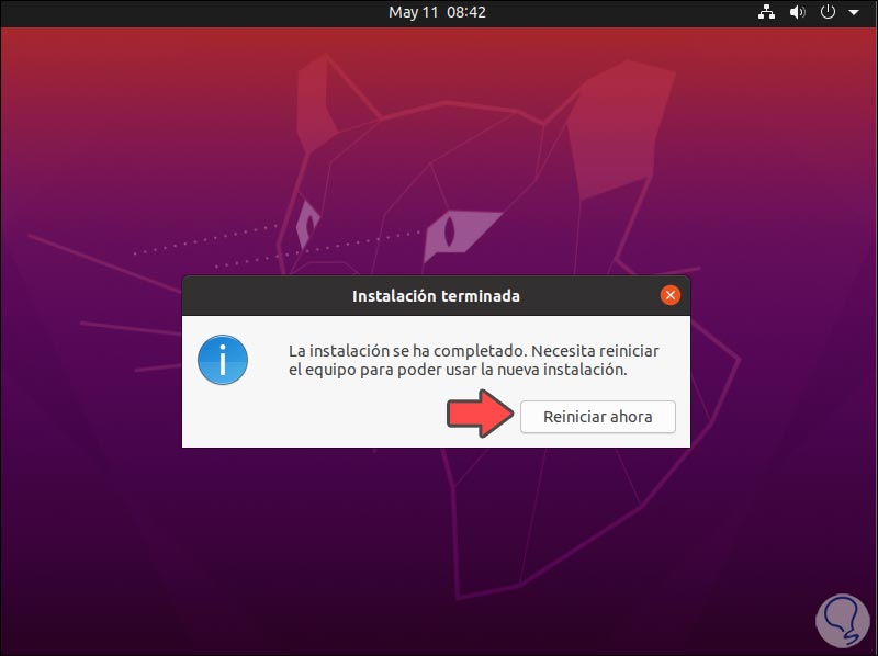 Damos clic en el botón “Reiniciar ahora”, removemos el DVD o USB de arranque con la imagen ISO y luego de esto accederemos a la ventana de inicio de sesión de Ubuntu 20.10: