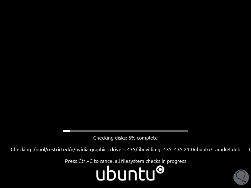 Una vez el sistema inicie con el medio de arranque seleccionado encontramos la primera novedad que es el análisis automático del disco en busca de errores: