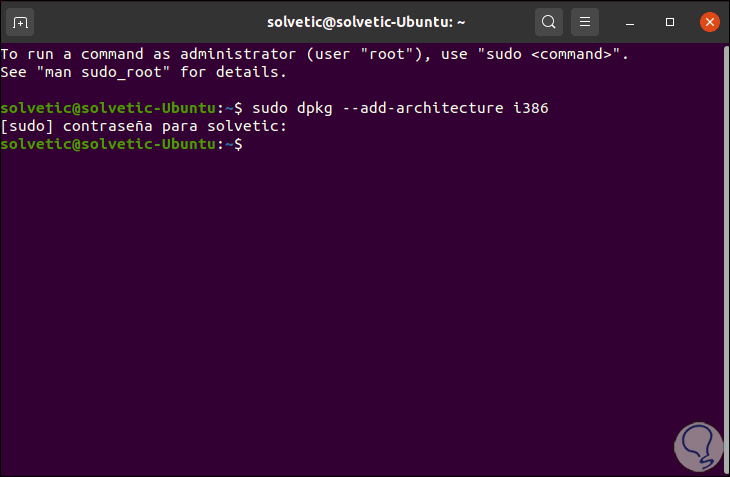 Por regla general, Ubuntu lo instalamos en un sistema de 64 bits, para que Wine funciones debe manejar de forma simultánea la arquitectura de 32 bits, para ello accedemos a la terminal y allí ejecutamos lo siguiente: