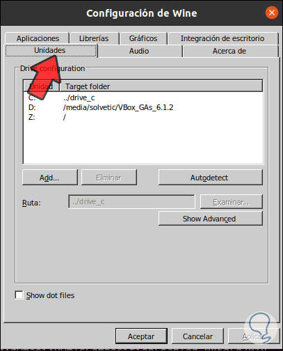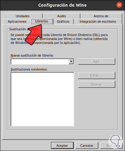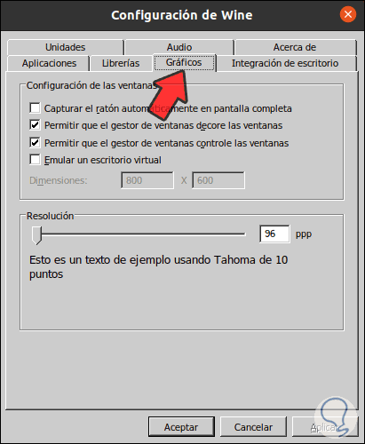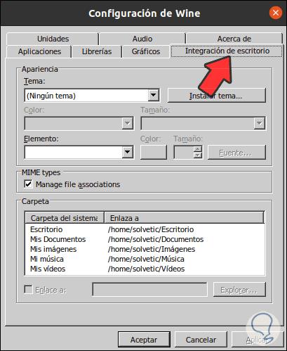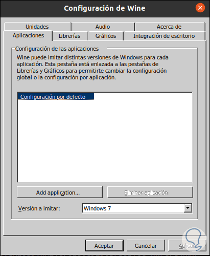 Desde allí es posible administrar todas las funciones de Wine en Linux, estas opciones son:
