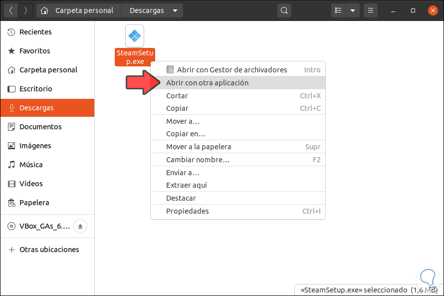 A continuación descargamos alguna aplicación .exe propia de Windows, damos clic derecho sobre ella y seleccionamos “Abrir con otra aplicación”: