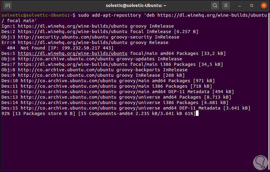 Vamos a descargar los repositorios de Wine ejecutando el siguiente comando: