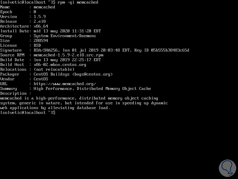 Es posible acceder a información detallada sobre el paquete Memcached con la siguiente orden:
