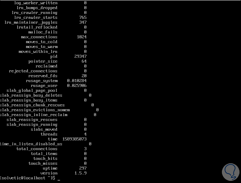 Comprobamos el estado de Memcached: