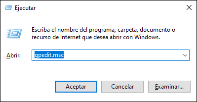 Para ello combinamos las teclas Windows + R y ejecutamos el comando “gpedit.msc”: