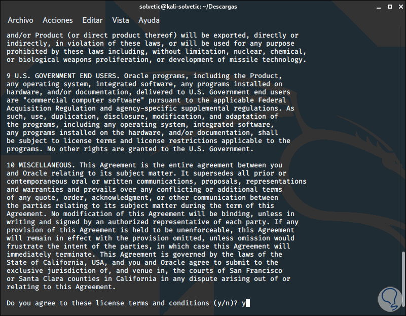 Ingresamos la letra “S” para confirmar la descarga e instalación de esta utilidad: