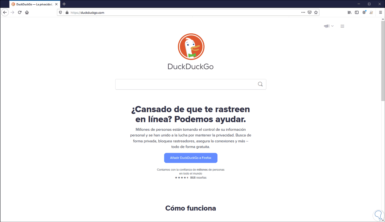 Para el caso de Firefox iremos al sitio oficial de DuckDuckGo en la siguiente URL: