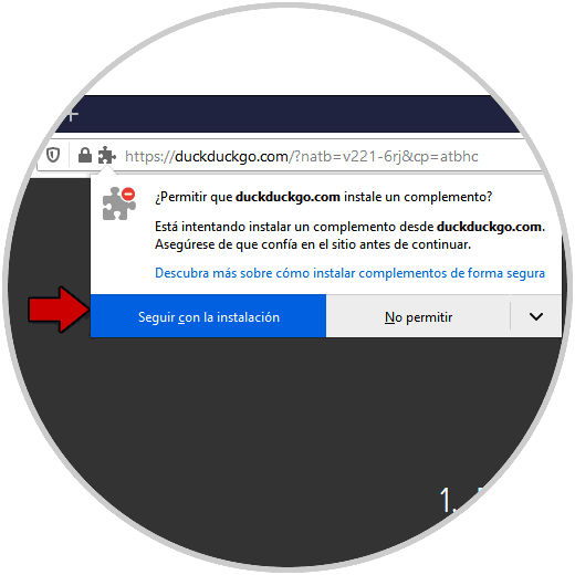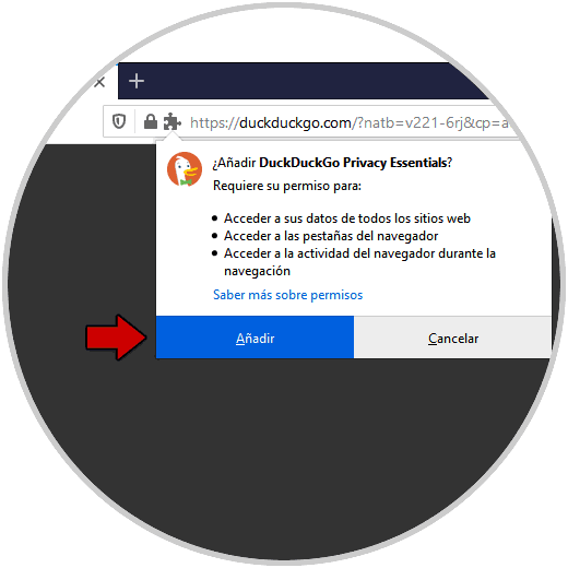 Damos clic en el botón “Añadir DuckDuckGo” a Firefox y veremos lo siguiente:
