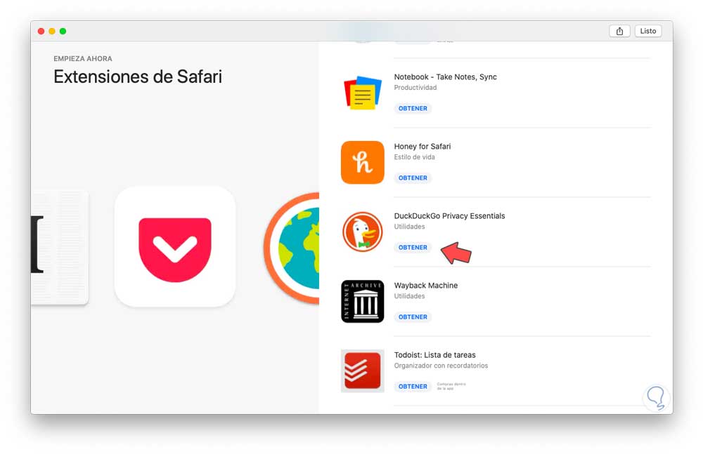 En la ventana de extensiones buscaremos y damos clic en “Obtener”: