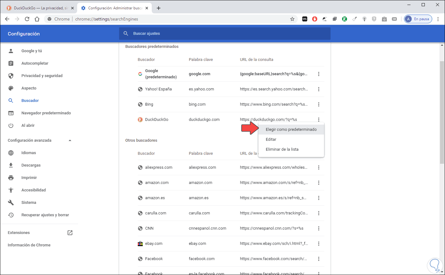 Google no cuenta con DuckDuckGo como uno de los navegadores opcionales por lo que debemos hacerlo de forma manual pero no es algo extraño.