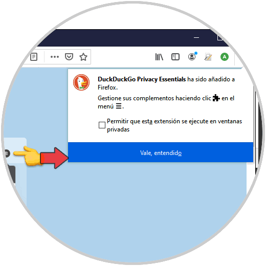Comprobamos que DuckDuckGo ha sido instalado de forma correcta en Firefox:
