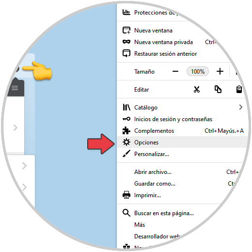 Vamos al menú de Firefox y seleccionamos “Opciones”: