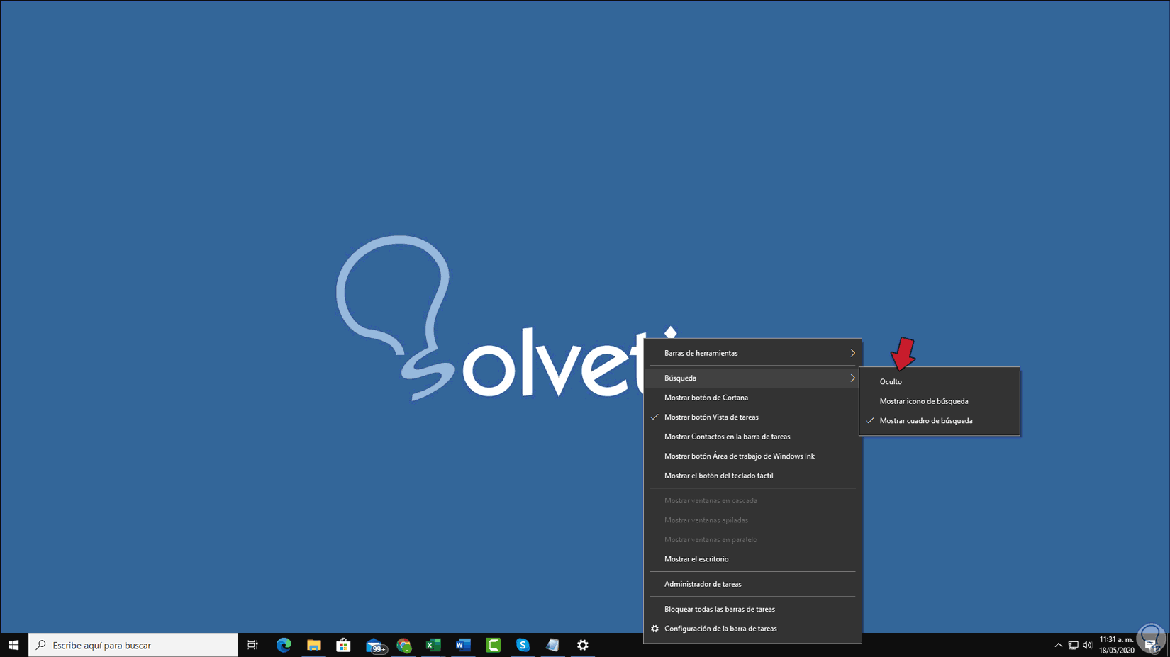 Cada una de estas opciones, excepto “Oculto” nos dan la posibilidad de realizar una búsqueda de lo que necesitemos en Windows 10. Así ya sabremos cómo poner el buscador en la barra de tareas Windows 10.