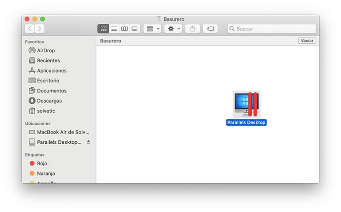 Luego de esto vaciamos de nuevo el basurero de macOS y con este método habrás eliminado por completo Parallels Desktop de macOS.