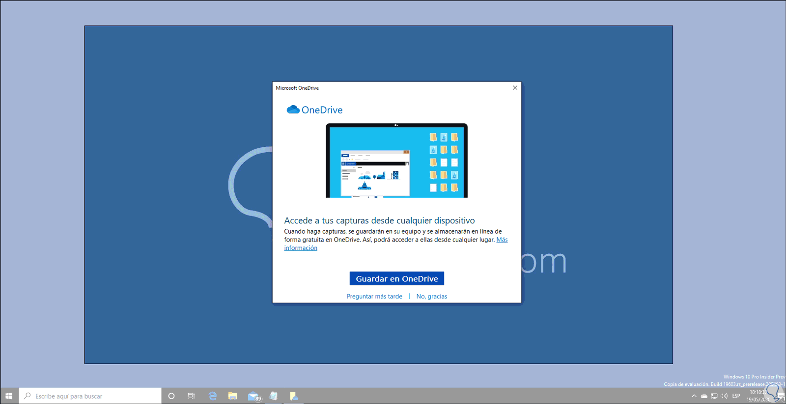 - Nuevo: aquí permite capturar pantalla en Windows 10