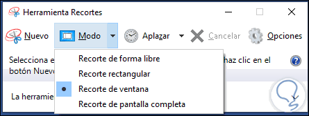 Cuando seleccionamos alguno de estos mods, por ejemplo, el modo de Recorte de ventana, al momento de dar clic en Nuevo veremos que se selecciona toda el área del escritorio y basta con dar clic sobre la ventana deseada para que sea capturada: