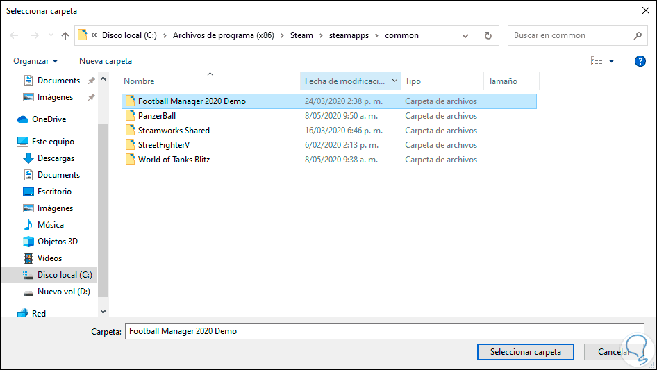Si seleccionamos “Carpeta” debemos seleccionar la carpeta completa: