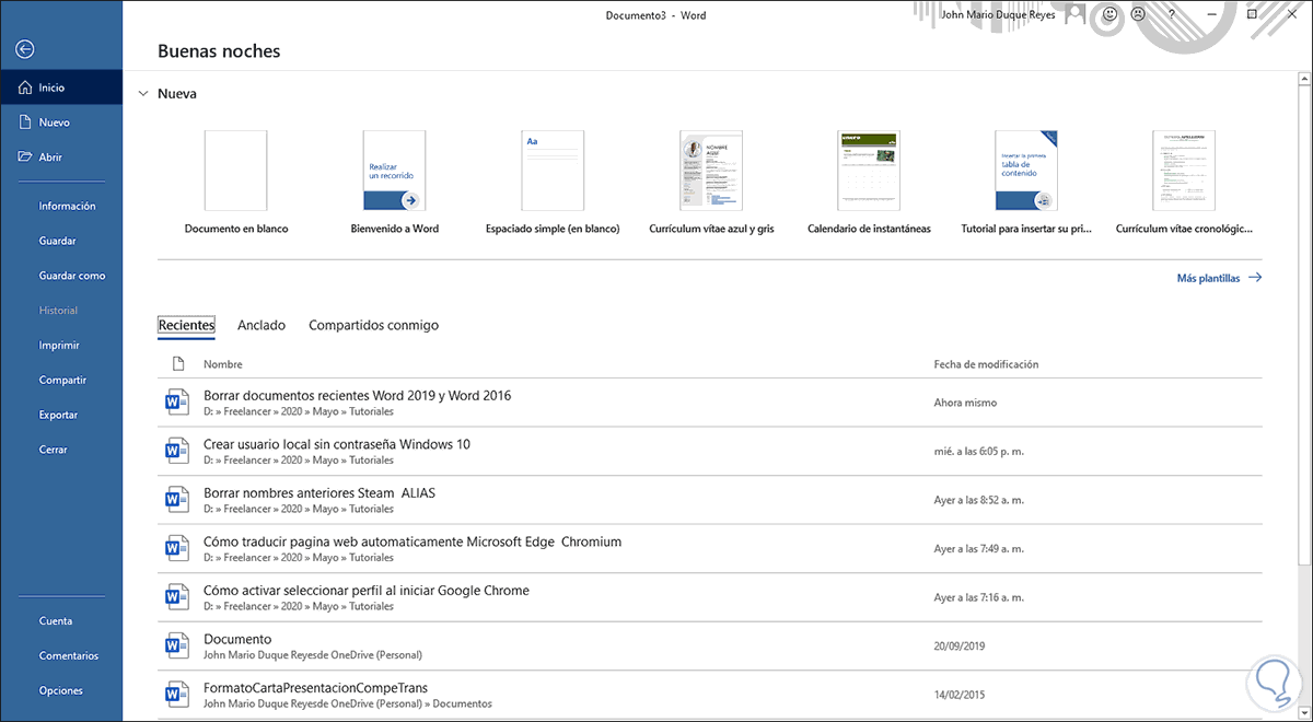 Microsoft Word forma parte de la suite de Office 2016 / 2019 siendo uno de los programas de edición de texto más usados por todas sus prestaciones de diseño, colaboración, seguridad y accesibilidad. Justo en esta última característica destacamos la capacidad de Word para permitirnos acceder a los archivos recientes directamente desde la aplicación: