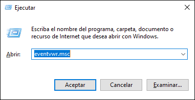 Windows Defender no dispone de una opción directa para borrar este historial. Iremos al visor de eventos del sistema usando las teclas Windows + R y ejecutando el comando “eventvwr.msc”:
