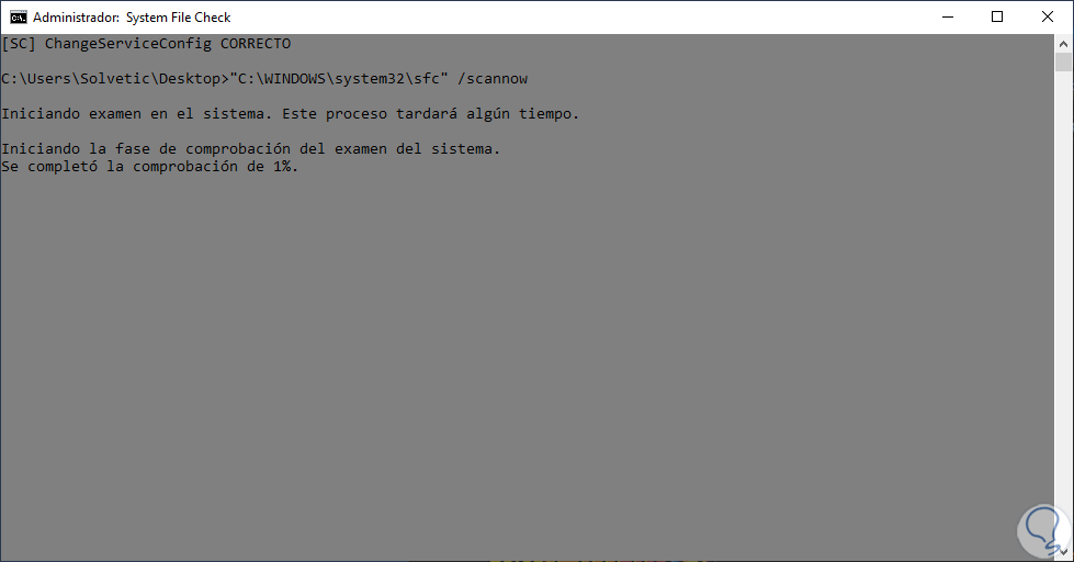 Vemos que la unidad no tiene errores, ahora damos clic en ® y tenemos la posibilidad de ejecutar un análisis del sistema con el ya conocido sfc /scannow:
