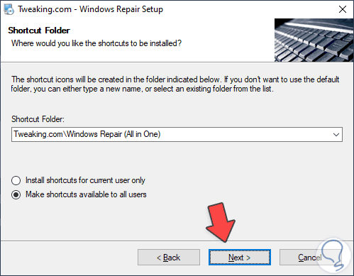 En la siguiente ventana definimos el nombre del acceso directo, así como si estará disponible solo para el usuario actual o para todos los usuarios del sistema: