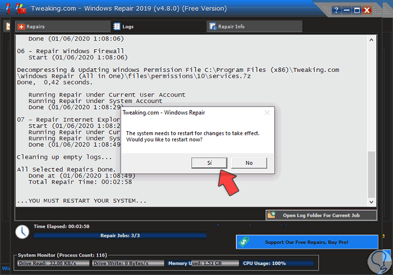 Damos clic en “Start Repairs” para iniciar la reparación seleccionada: