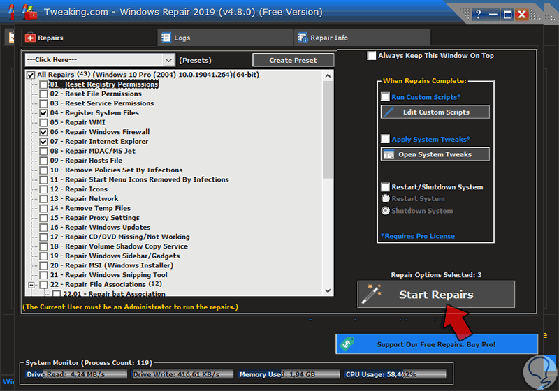 4. Reparar errores con Windows 10 Tweaking - Windows Repairs