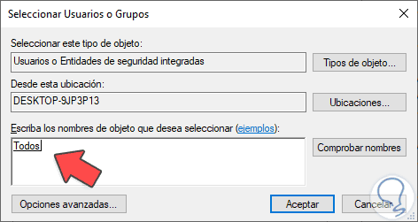 Como vemos por defecto solo los Administradores tienen los permisos, para que el comando pueda ser ejecutado de forma correcta daremos clic en “Agregar usuario o grupo” y allí ingresaremos “Todos”: