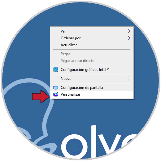 Este método permite que sea visible el icono de la papelera de reciclaje en el escritorio, para eso debemos dar clic derecho en el escritorio y en el listado seleccionar “Personalizar”: