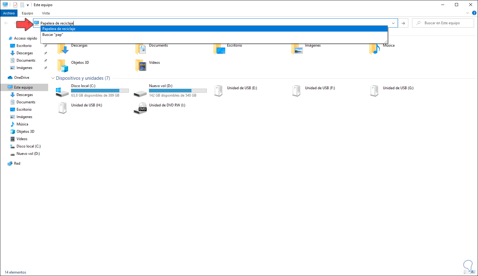 3. Abrir Papelera de reciclaje desde Explorador