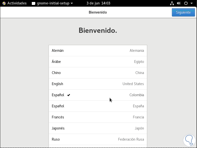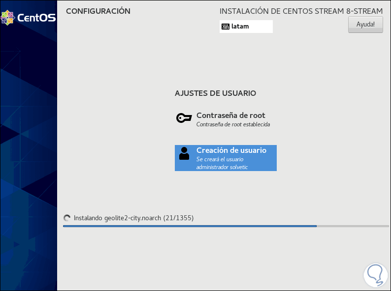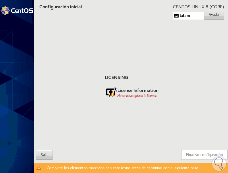 Al acceder debemos definir el idioma de uso de CentOS Stream: