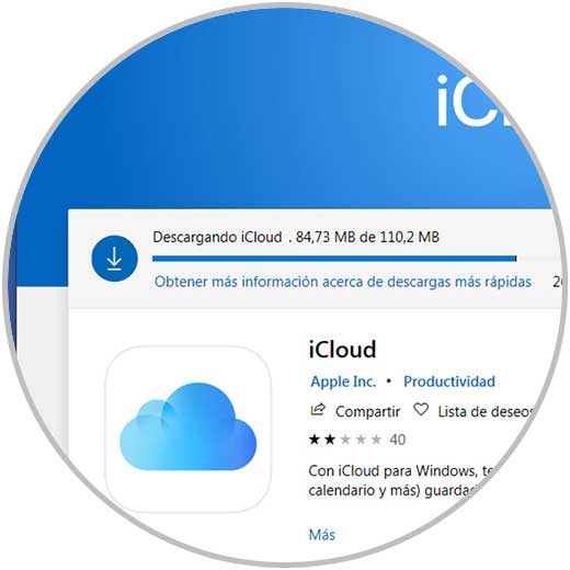 Veremos que tras ello comienza la descarga e instalación de iCloud Windows 10.