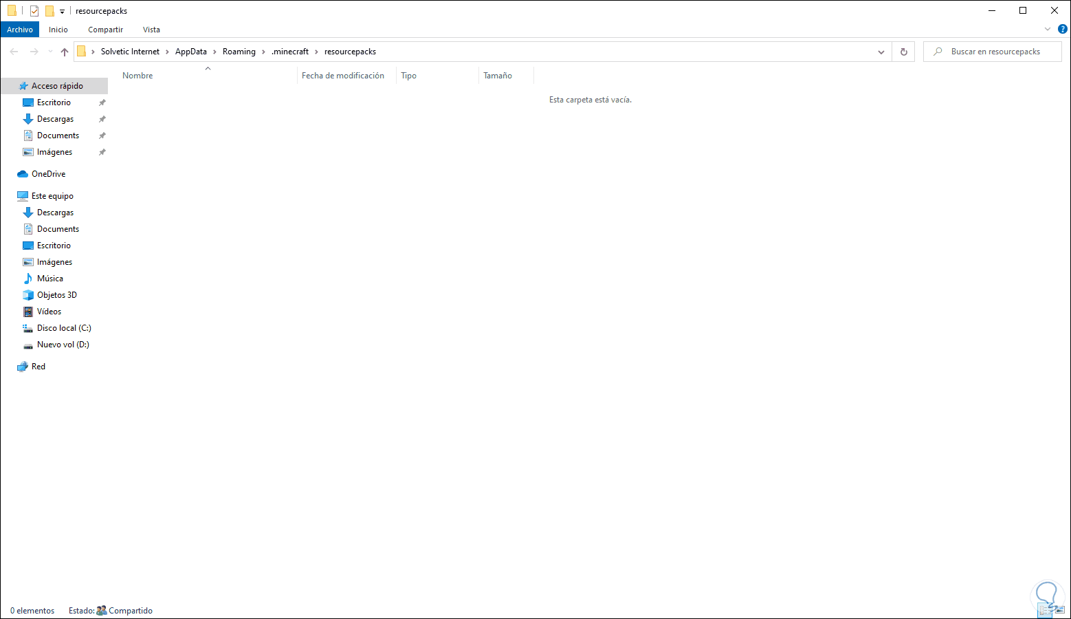 Al acceder veremos lo siguiente. Pero si por alguna razón la carpeta. minecraft no está dentro de %appdata%, Solvetic te explicará como ubicarla en Windows 10.