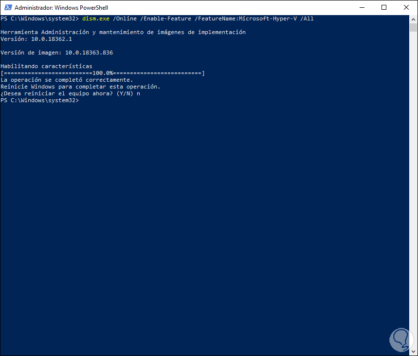 2. Desactivar o activar Hyper-V Windows 10 PowerShell