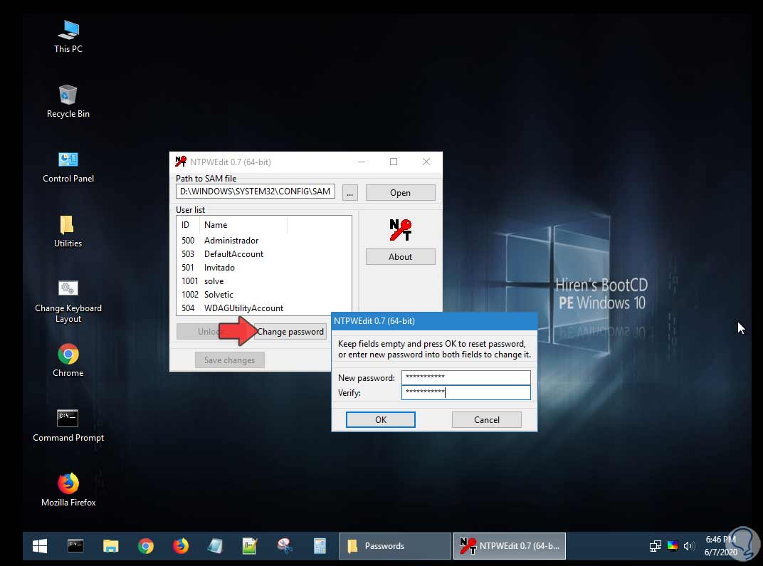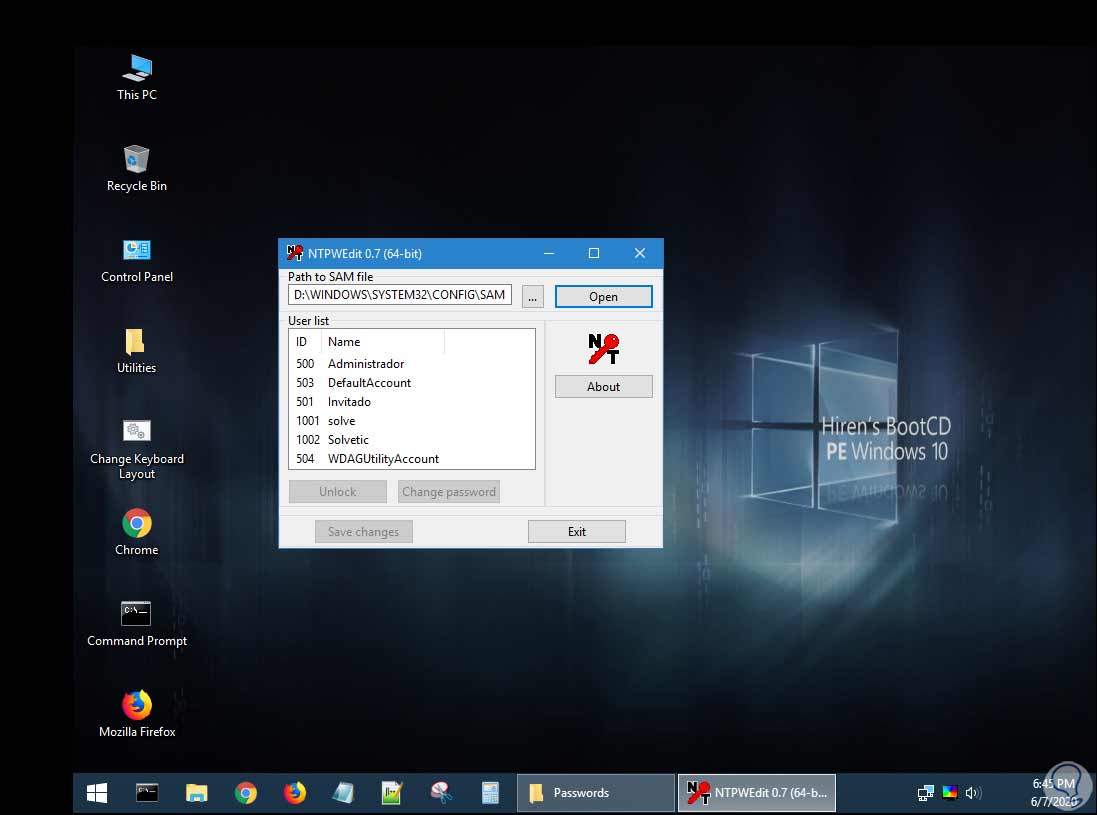 Con Hirens Boot PE es posible restablecer la contraseña de nuestro usuario de una manera funcional y así tener de nuevo acceso al sistema.