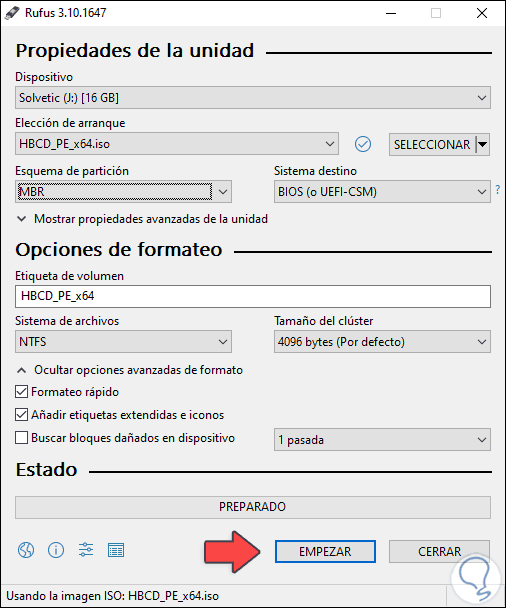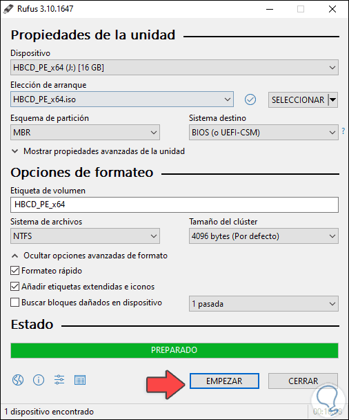 1. Crear USB de arranque de Hirens Boot PE con Rufus