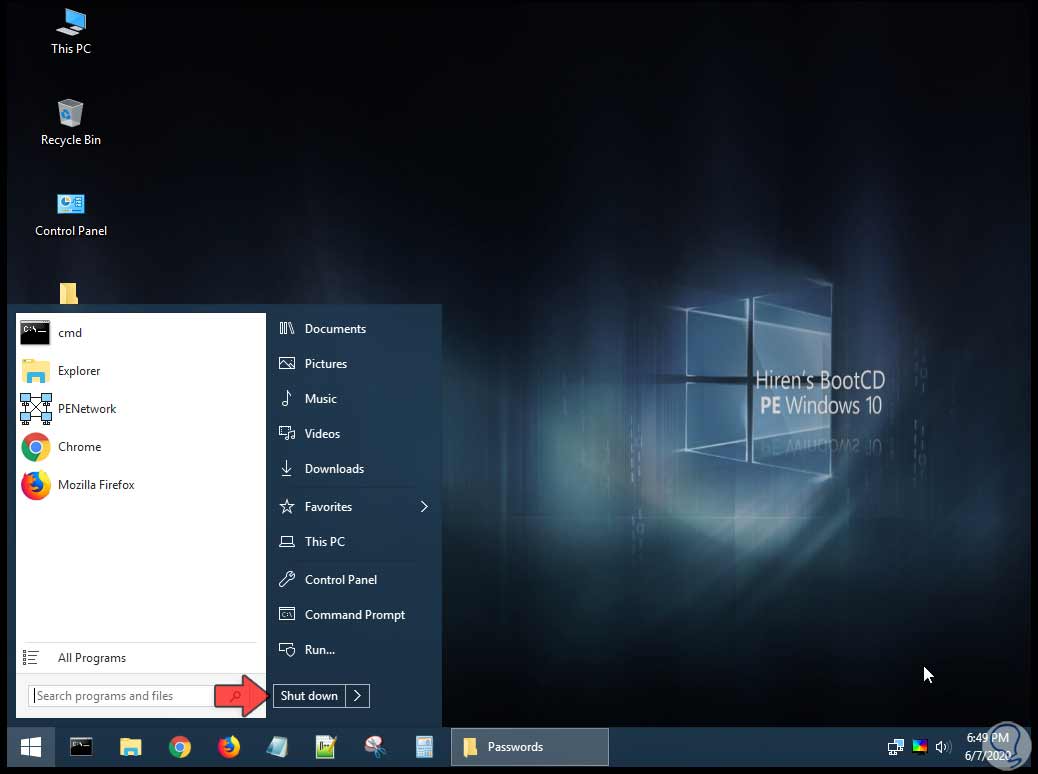 2. Resetear contraseña Windows 10 con Hirens Boot PE