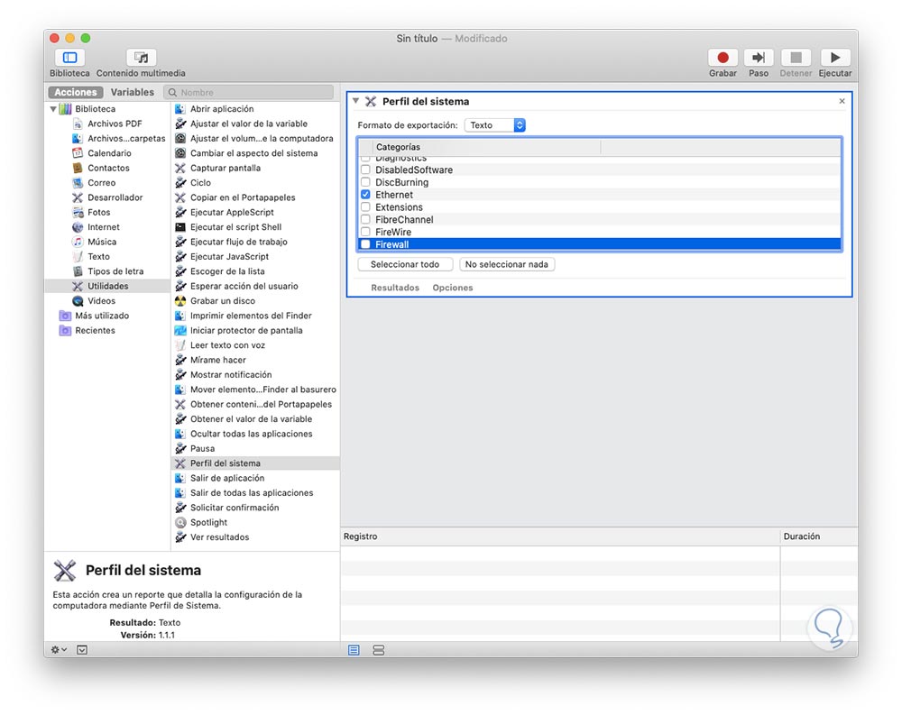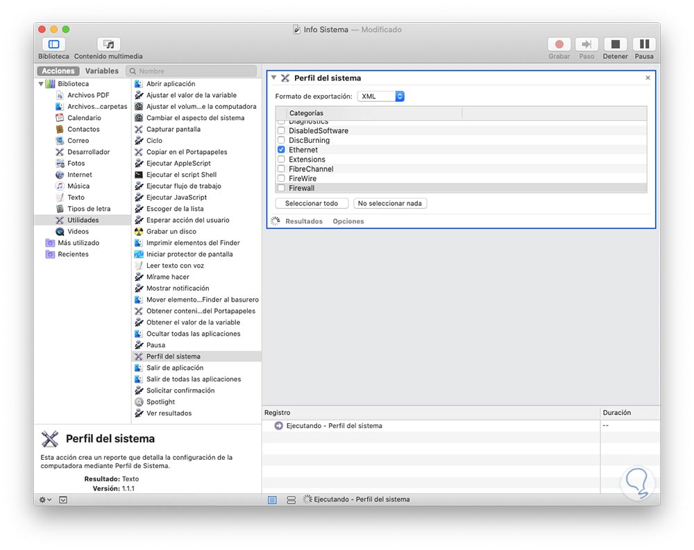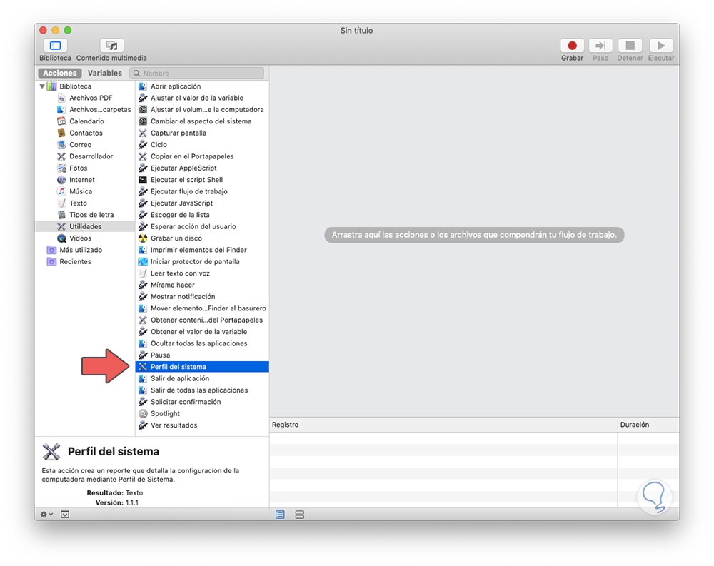 Otro ejemplo a realizar será acceder a detalles del sistema, para esto vamos a seleccionar “Utilidades” en Biblioteca y luego elegimos “Perfil del sistema”: