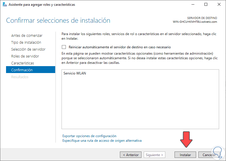 Una vez que la característica de Wi-Fi haya sido instalado de forma correcta en el servidor, veremos que es necesario reiniciarlo para aplicar los cambios: