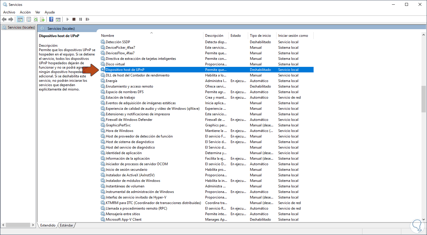Finalmente buscamos el servicio llamado “Dispositivo host de UPnP”: