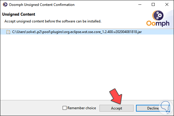 Allí debemos dar clic en el botón “Accept” y luego continuara la instalación de este hasta que veamos lo siguiente: