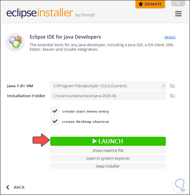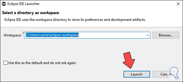 Para ejecutar Eclipse IDE damos clic en “Launch” y se dará paso al arranque de la app: