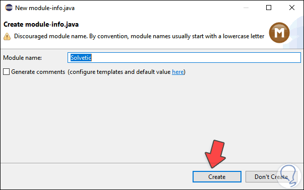 Damos clic en “Finish” para ingresar el nombre del módulo: