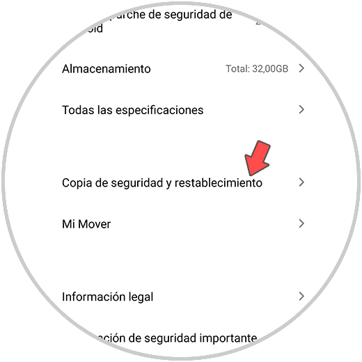 Lo siguiente que debes hacer es pulsar en “Copia de seguridad y restablecimiento”.