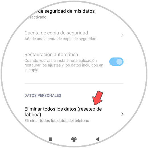 En ese caso debemos tener en cuenta que, si no realizamos una copia de seguridad previa, perderemos toda la información que tengamos almacenada en el dispositivo. En el caso de que por tanto queramos llevar a cabo este proceso y que nuestro móvil Xiaomi Redmi 9 quede borrado por completo, los pasos que debemos seguir son estos.