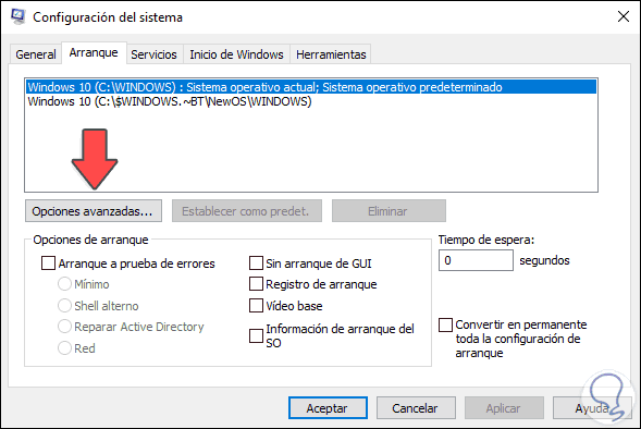 Damos clic en el botón “Opciones avanzadas” y veremos lo siguiente: