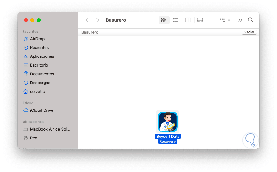 Esto moverá la aplicación al basurero de macOS Big Sur. Allí vaciamos el basurero dando clic sobre el botón “Vaciar” ubicado en la parte superior.