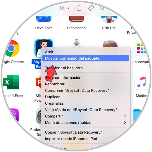 Damos clic derecho sobre ella y seleccionamos “Mostrar contenido del paquete”:
